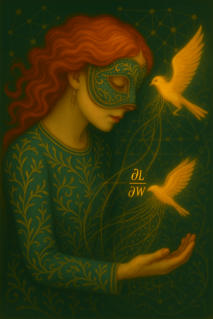 The birds carry invisible lines of correction, flying backward through the network like thoughts revisiting memory.